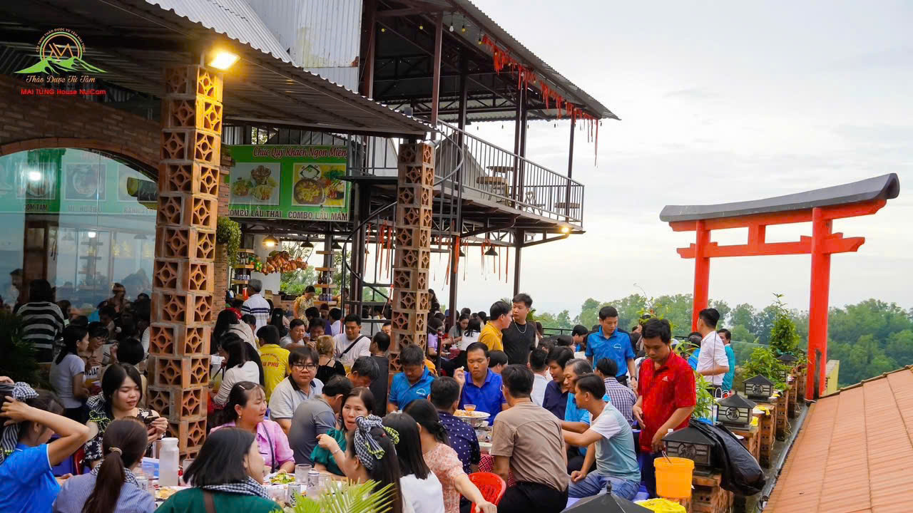 Trải nghiệm du lịch tại Mai Tùng House Núi Cấm không chỉ mang đến cho bạn không gian nghỉ dưỡng yên bình mà còn những góc check-in cực kỳ ấn tượng. Từ cổng trời rực rỡ, những quán cà phê view núi rừng, cho đến các ban công gỗ mộc mạc hướng thẳng ra thiên nhiên, tất cả đều tạo nên một bức tranh sống động và đầy cảm xúc..